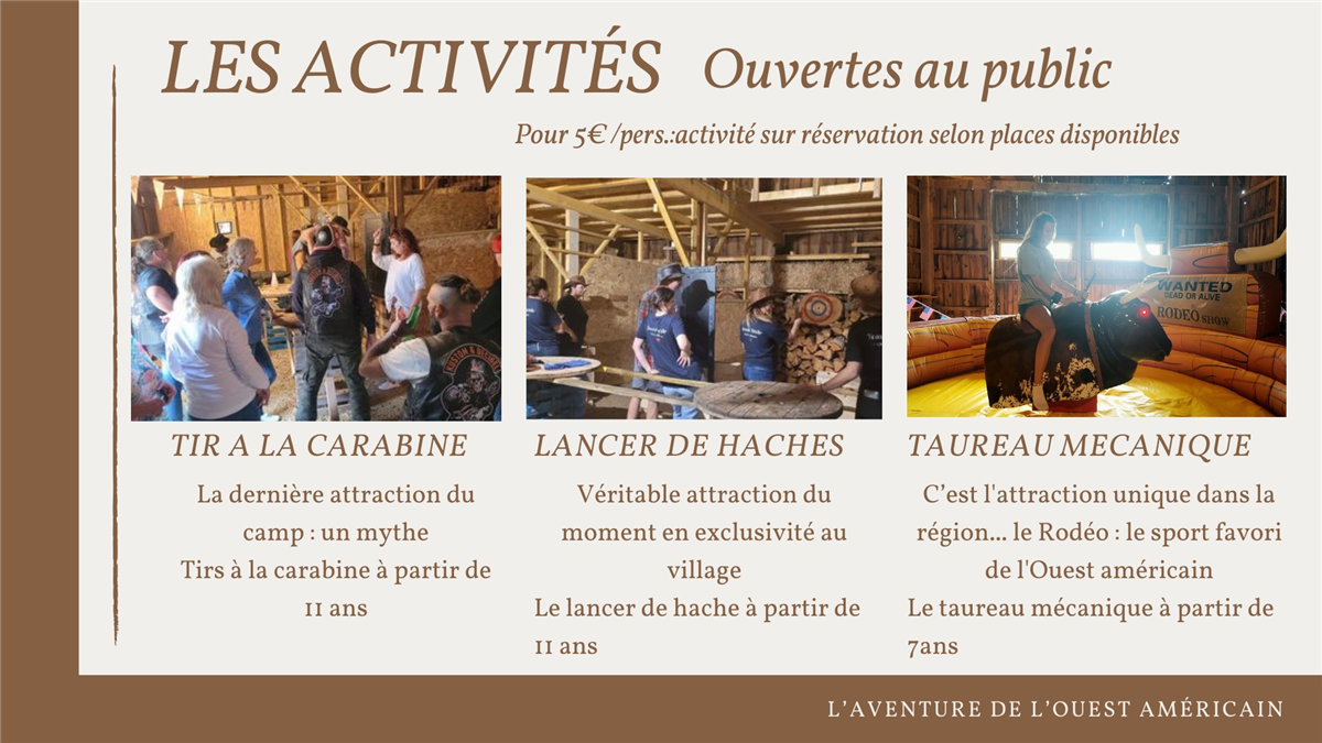 Hébergements insolites sur le thème du western avec des activités de plein air et une petite restauration.