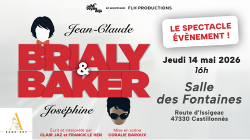 - Jeudi 14 mai de 16h à 18h : représentation de la pièce de théâtre Brialy & Baker à la salle des Fontaines de Castillonnès (route d'Issigeac).