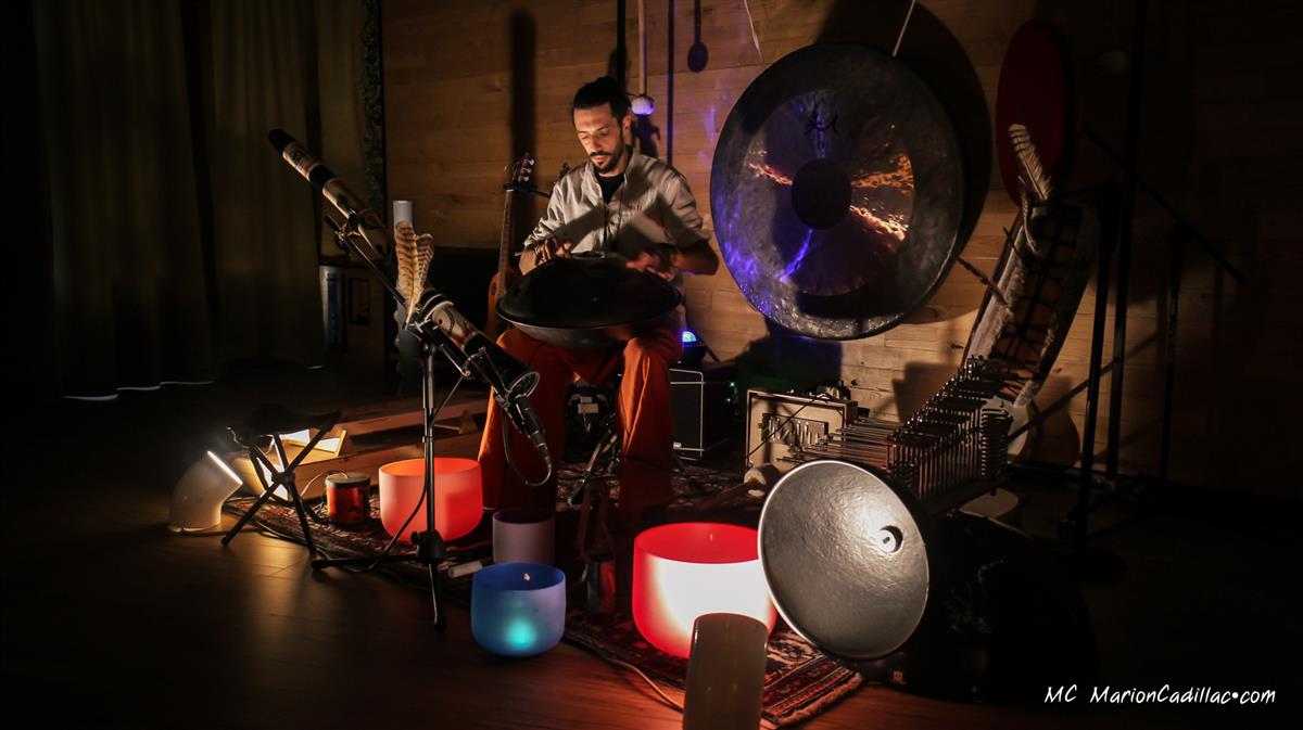 Au fil des morceaux du sitar indien, de l’euphone du handpan, du kotamo, du didgeridoo, des bols en cristal, des tambours médecines, du gong. Sa musique est une ode à la nature, faite de sons et de vibrations qui nous rappellent notre lien avec le monde subtil et nous invitent à nous reconnecter à notre source intérieure.