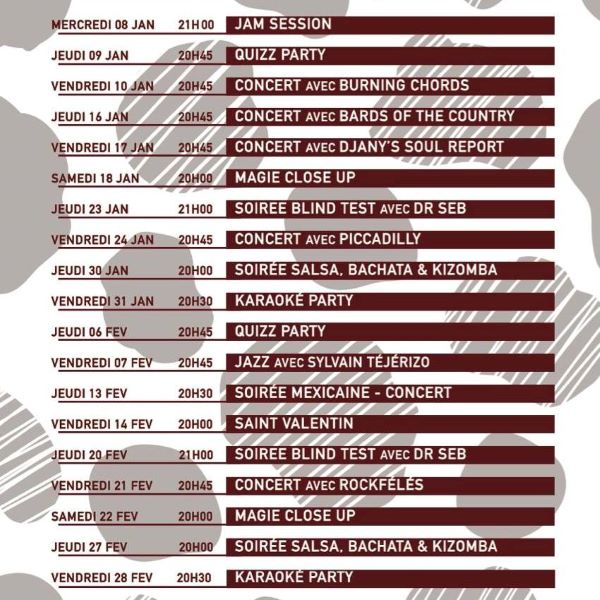 Du concert de pop, de blues, de la musique brésilienne, du jazz, du karaoké, des soirées DJ avec Goldie Bass, de la salsa...