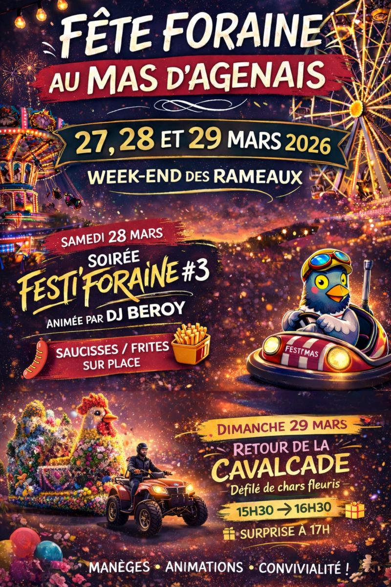 Nouveauté 2026 : le retour de la Cavalcade (défilé de chars fleuris) de 15h30 à 16h30 et une surprise à 17h !