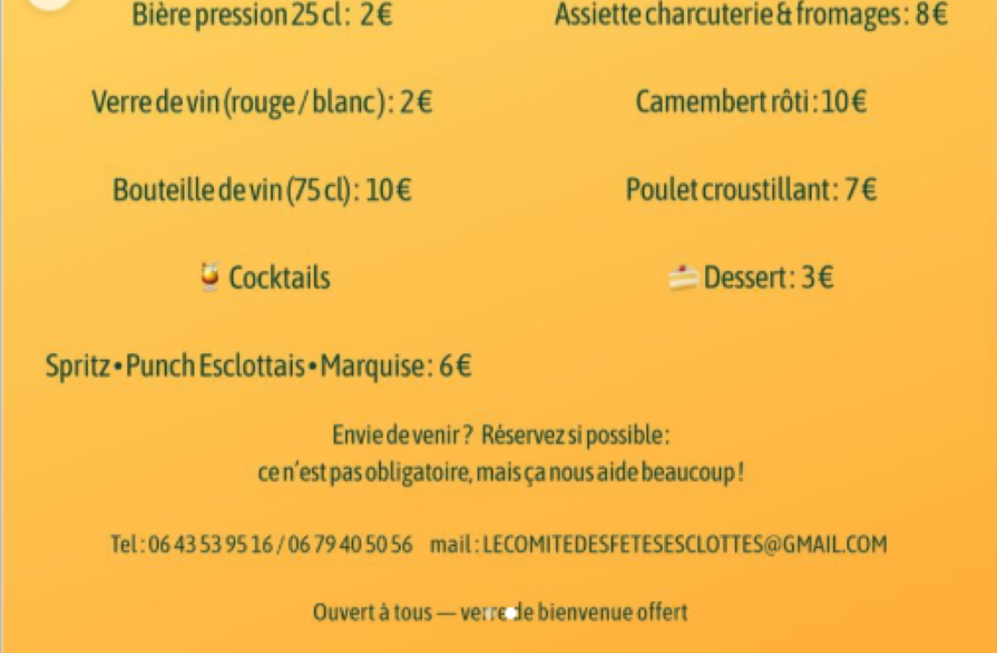 Animation musicale, apéro tapas, buvette