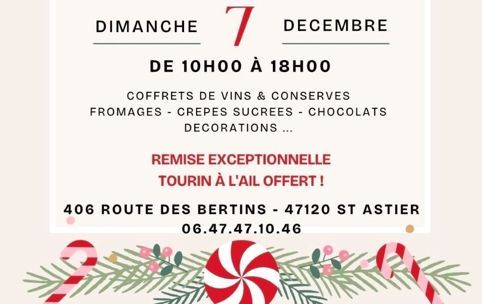 - Dégustation de nos vins – l'occasion parfaite de trouver les bouteilles et les bons foies gras qui accompagneront vos repas et de confectionner vos coffrets à glisser sous le sapin. Un large choix de coffrets à votre disposition.