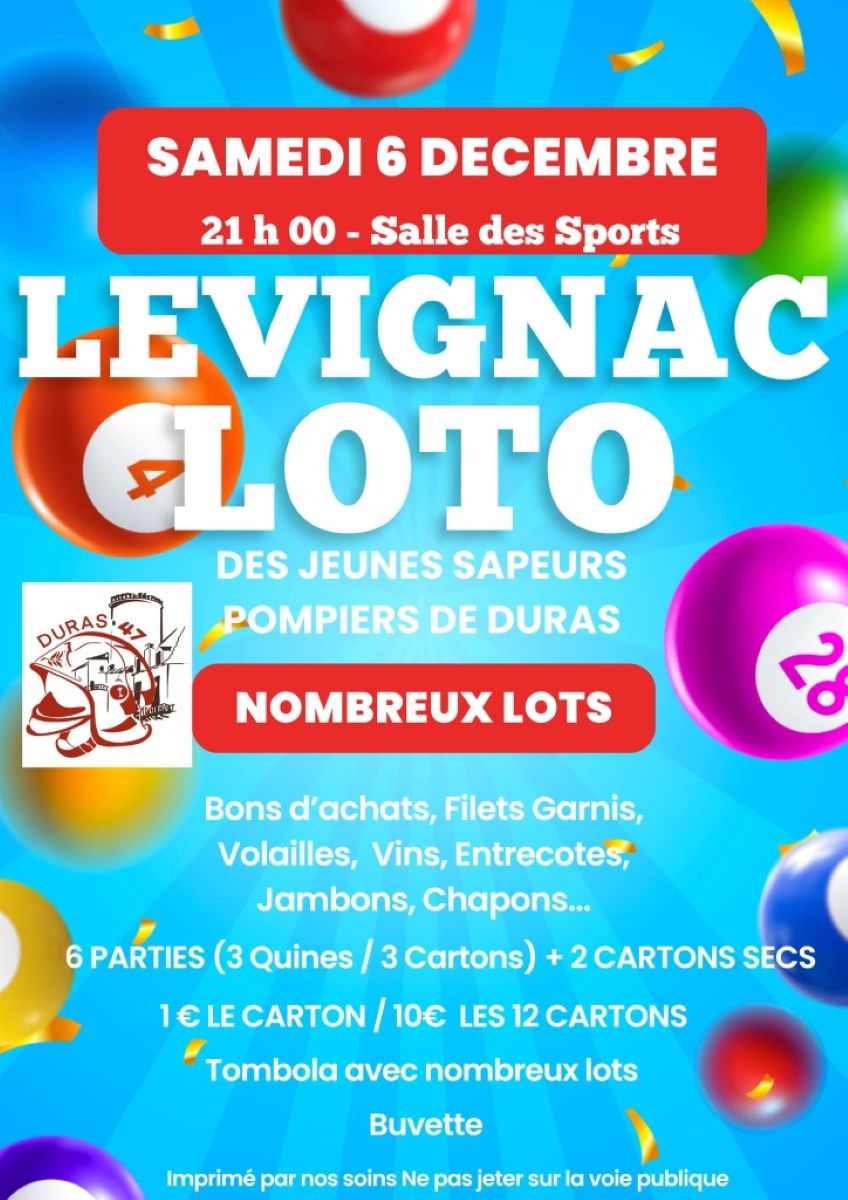 Loto au profit des jeunes sapeurs pompiers de Duras