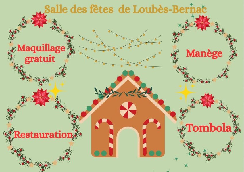 Marché de Noel à Loubès-Bernac avec maquillage gratuit, manèges, restauration, tombola et présence du Père Noël à 11h30 et 15h30