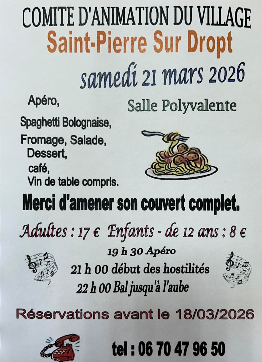 Soirée spaghetti organisée par le comité d'animation de Saint Pierre sur Dropt.