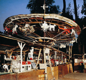 Cette œuvre gigantesque faite d ‘objets en mouvement est construite sans plan et sans calcul dans un pré avec des matériaux de récupération, de la tôle, du fil de fer, de la ficelle …