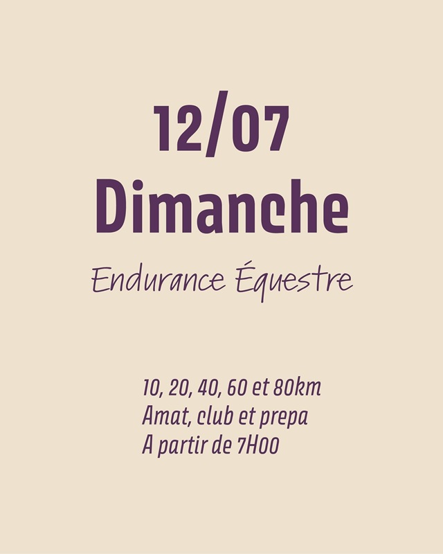 - à 7h : départ de l'endurance équestre.