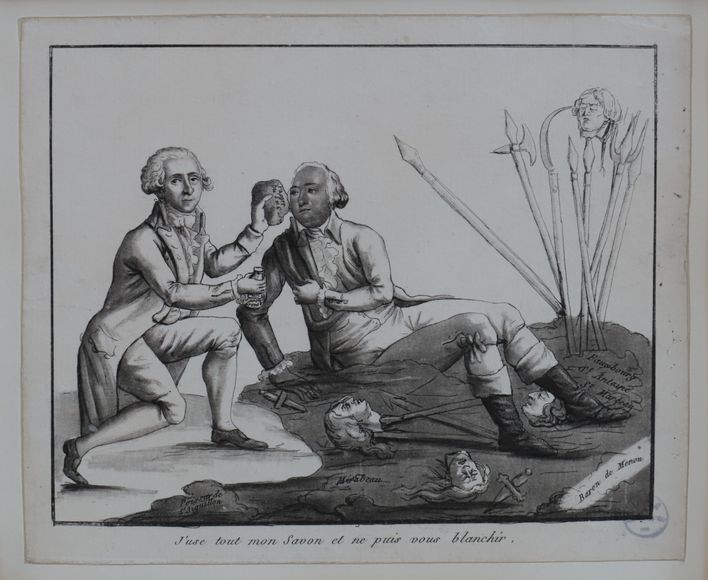La Révolution française s’accompagne d’un développement de la caricature et du dessin de presse. Personnage impliqué dans la vie politique de son temps, le duc d’Aiguillon n’échappe pas aux représentations à charge réalisées par ses adversaires.