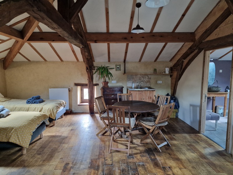 Une maison un brin atypique au milieu des champs, créé avec beaucoup d'amour. De grands espaces communs pour des retrouvailles en famille ou entre amis, qu'il pleuve ou qu'il fasse grand soleil ! Accès privatif au bain nordique dans le jardin clôturé, chauffé par vos soins (bois à volonté). Terrain de pétanque, hamac, salon de jardin , barbecue... Une médiathèque avec livres et jeux, piano électrique...