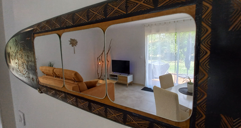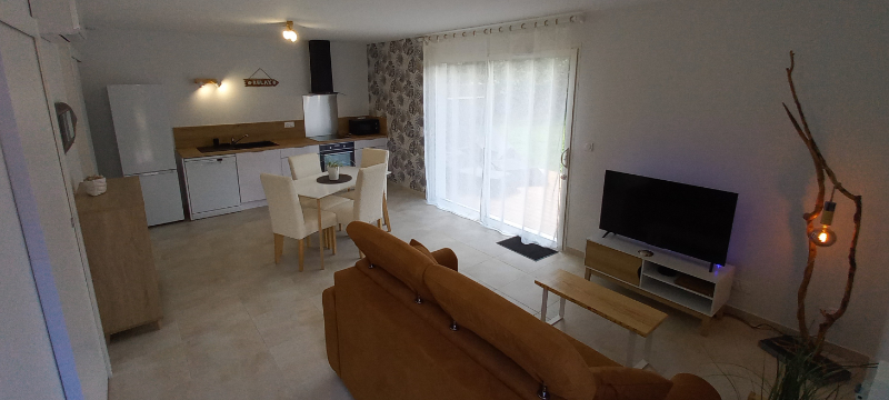 Petit havre de paix de 45 m² pour une détente absolue au calme et avec la nature… Pour vacanciers et curistes, seul(e) ou à deux (1 chambre / 1 lit). Belle pièce de vie fonctionnelle et très lumineuse, salle d'eau, WC, cellier, logement PMR de plain-pied, parking privé gratuit. Belle terrasse équipée de transats confortables, plancha électrique, salon de jardin, parasol déporté, petit coin aménagé à l’ombre d’arbres fruitiers, et boulodrome commun... Loin des bruits citadins mais proche de tout ! À 900 m du Leclerc, 1,5 km du centre-ville, marché et commerces, 2 km des Bains/Thermes de Casteljaloux, 3 km du lac de Clarens… Tous accessibles aussi à pied ! Et enfin, à 6 km du Center Parcs. (Informations complémentaires : logement dédié aux adultes ; sans animaux ; validation de réservation par la propriétaire uniquement). Forfait curiste possible.
