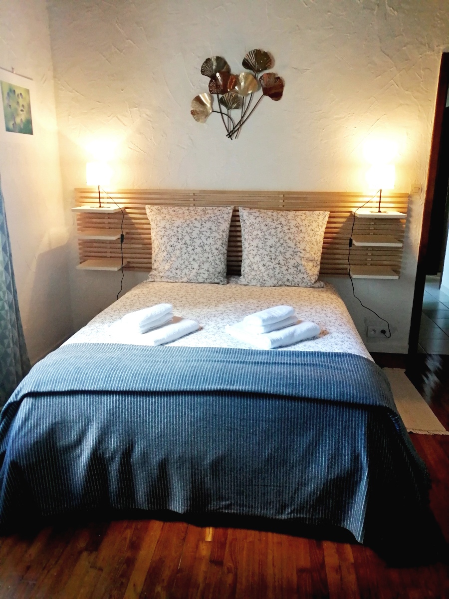 Gite de campagne isolé, pouvant accueillir jusqu'à 6 personnes et situé dans environnement très calme. 2 chambres : une avec un lit en 140x190 et la seconde avec un lit en 140x190 et 2 lits en 90x190 superposés. Une cuisine équipée, avec coin repas et ouverte sur le salon avec cheminée. Terrain arboré, avec pelouse et bassin d'eau douce. Propriété de 11 hectares avec bois, landes, accès au Lot. Idéal pour les familles, les pêcheurs et les amoureux de nature et du calme. Nombreuses activités loisirs et commerces proches. Cale de mise à l'eau pour bateau au bout de la route. Possibilité d'installer une tente dans le jardin.