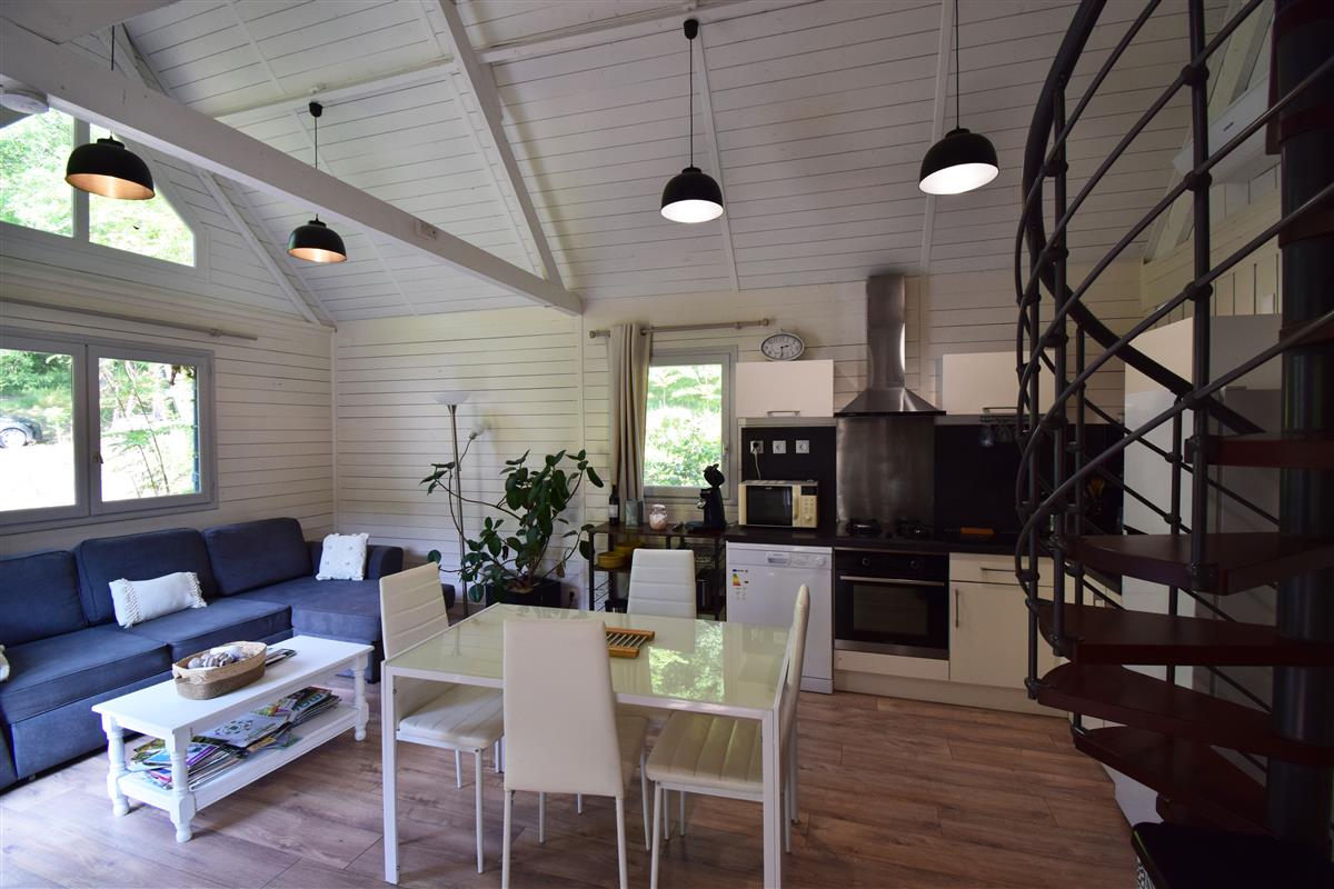 Dans le Sud-ouest, au coeur de la forêt des Landes de Gascogne, les villages de Sos, Poudenas, Mézin sont des cités à la personnalité affirmée et aux nombreux trésors. Parmi ces derniers, posé dans un écrin de végétation riche et luxuriante de 18 ha, au pied d'un lac, le Chalet vous attend pour un séjour dépaysant, authentique et ressourçant. Sa terrasse avec piscine intégrée au-dessus du lac, son intérieur délicat et douillet, vous enchanteront. Superficie: 50 m². 2 chambres : 1x160 cm au RDC et 2x90 cm à l'étage. Location draps et linge de toilette. Salle d'eau au RDC avec WC. WC à l'étage. Cuisine équipée/séjour/salon. Canapé. Hifi. DVD. TV écran plat. Wifi. Climatisation réversible. Terrasse. Propriété 18 ha. Piscine privée 5,50m x 3,50 m fond plat 1,2m avec portail sécurité et alarme.(ouverte de juin à septembre).