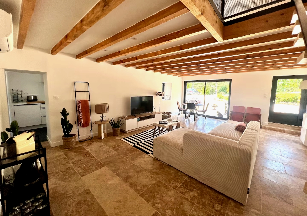 Détendez-vous dans ce logement calme et élégant, en pleine nature et complètement isolé, gîte d'une capacité de 2 adultes et un enfant (environ 70m²), entièrement rénové et composé d'une pièce à vivre avec cuisine équipée, terrasse, grande chambre avec grand lit Queen-size (160), un lit enfant, et salle d'eau avec WC. Parking sur place.