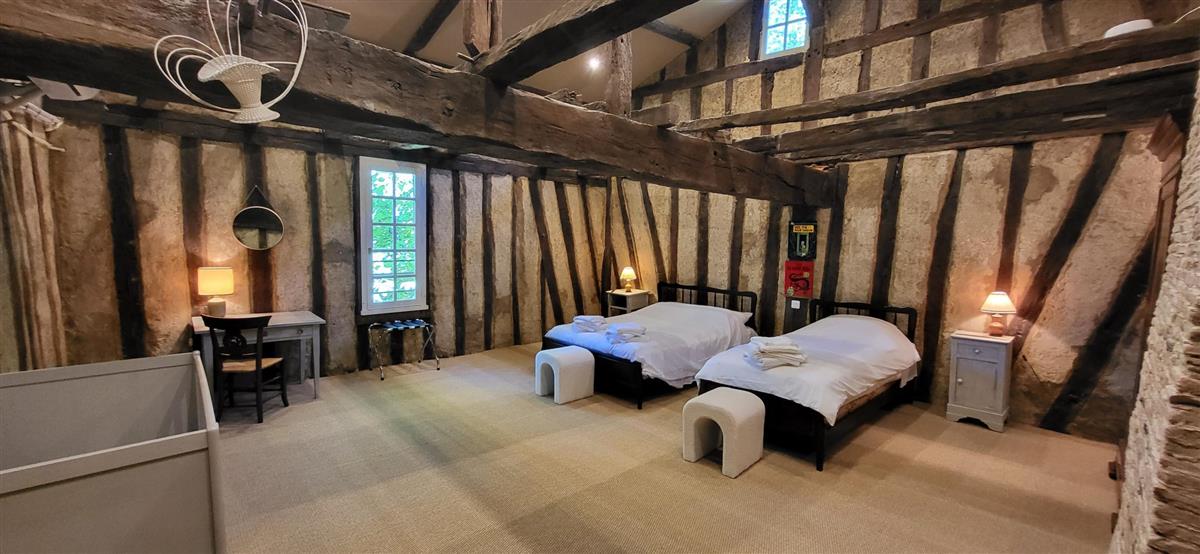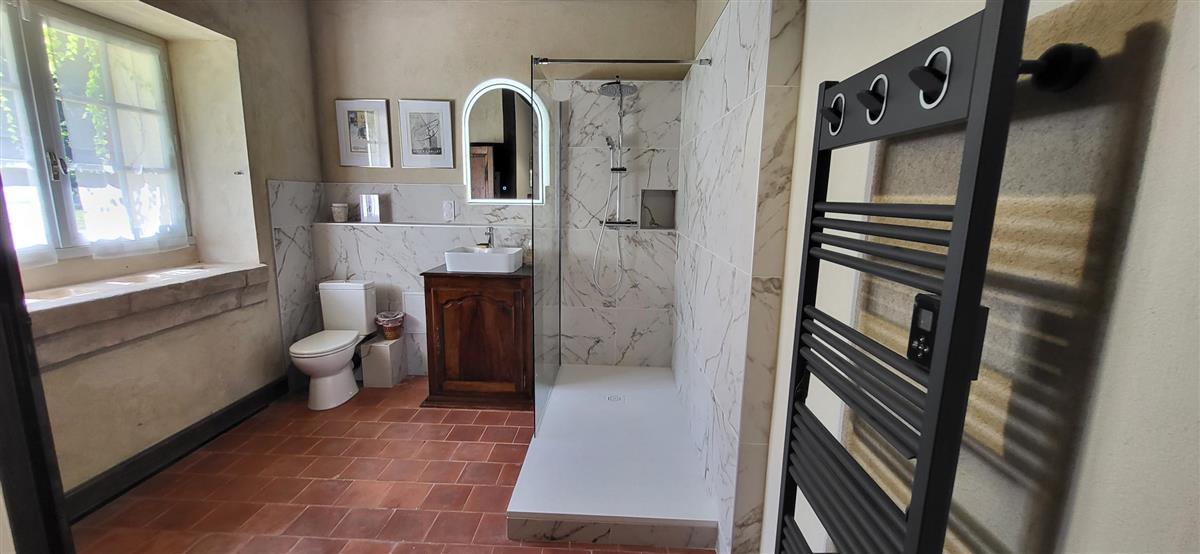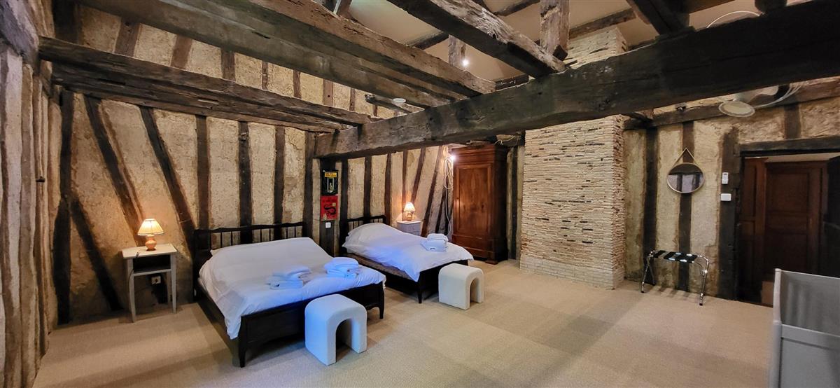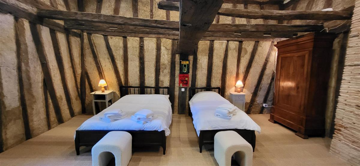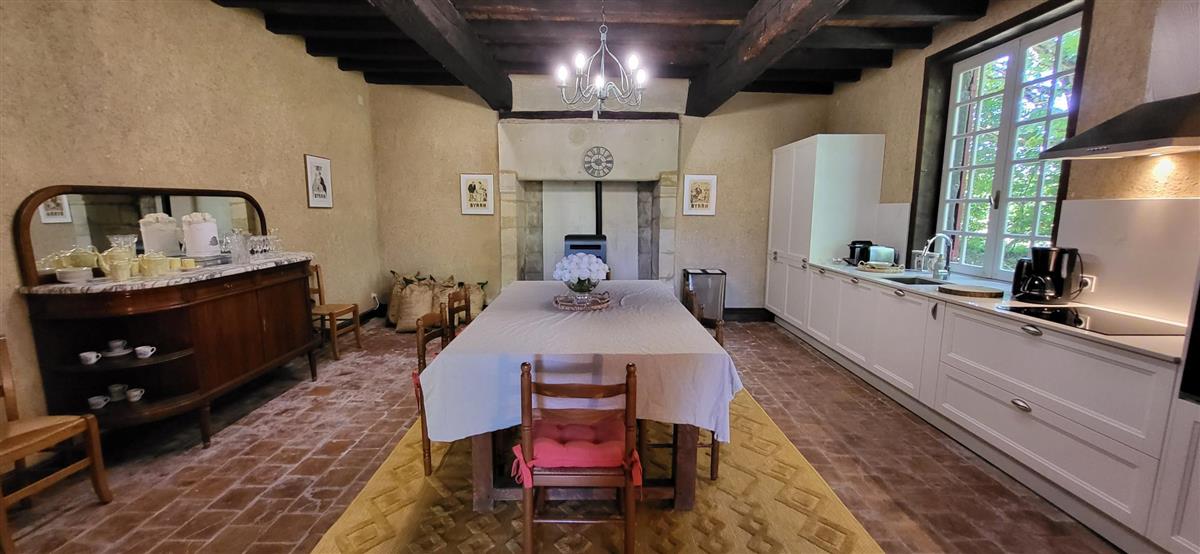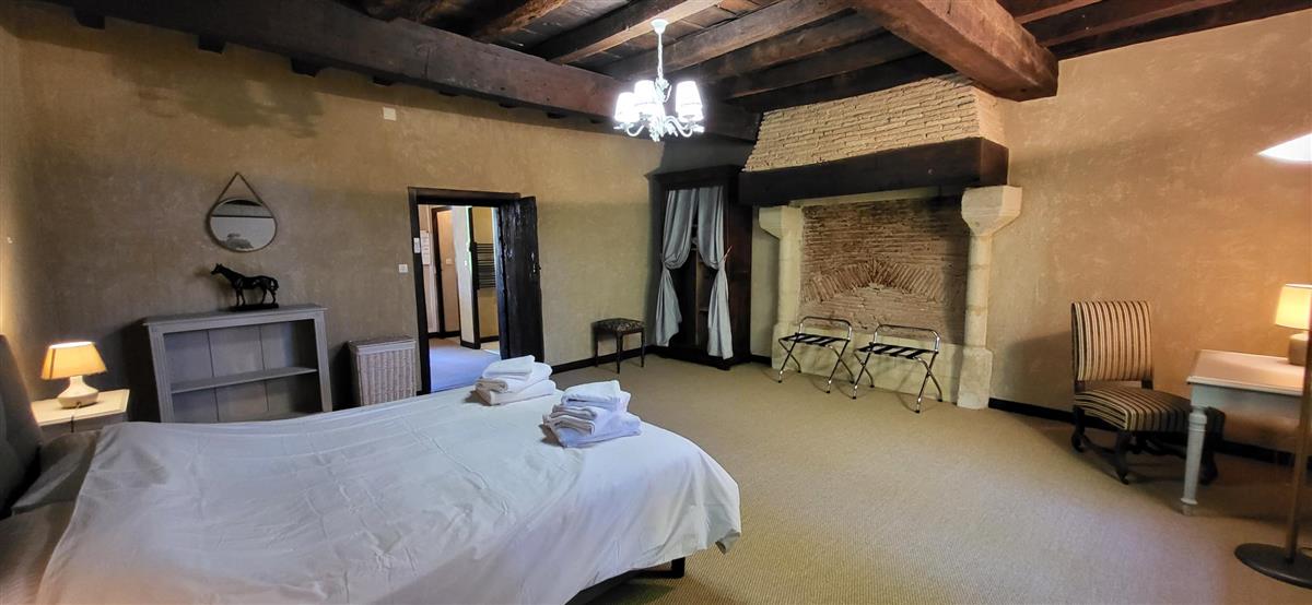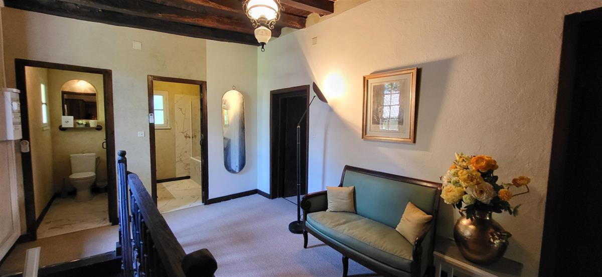 En rdc, une vaste cuisine équipée avec espace repas, salon alliant tradition et modernité, une salle d'eau avec WC. Depuis l'entrée, un escalier ancien équipé d'un monte-escalier automatisé, vous conduira à l'étage. La chambre 1 (1x160) et son coin salon, la chambre 2 à colombage (1x140 et 1x90) et la petite chambre 3 (1x140). Salle de bain et WC séparés. A l'extérieur, terrasse sous auvent et spa. Plus loin, devant la maison de maître, la piscine chauffée à partager avec le propriétaire qui saura être discret. Poêle à granule en rdc, clim réversible à l'étage.