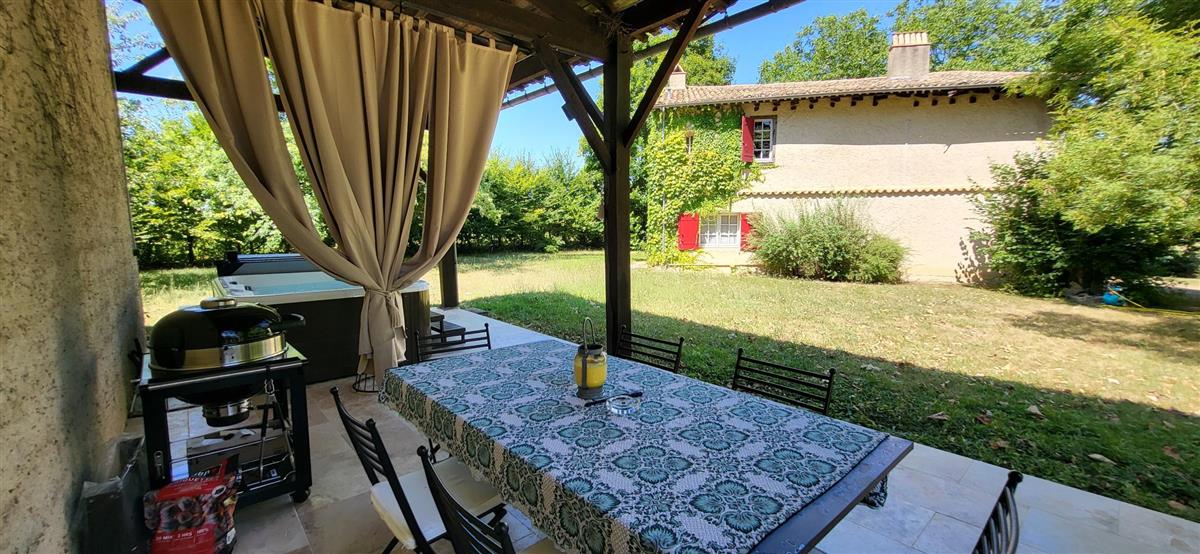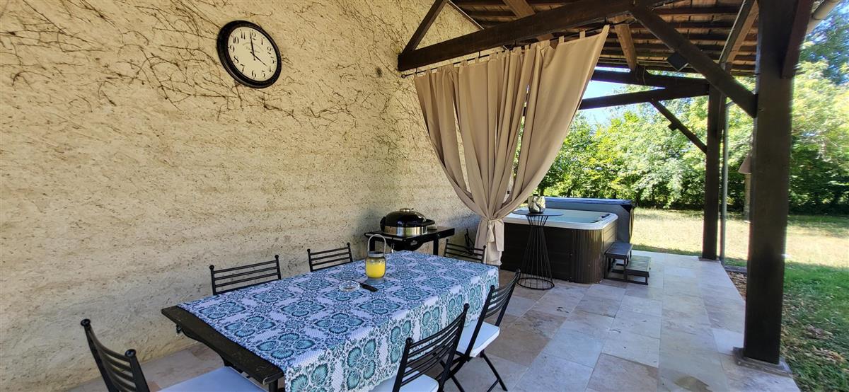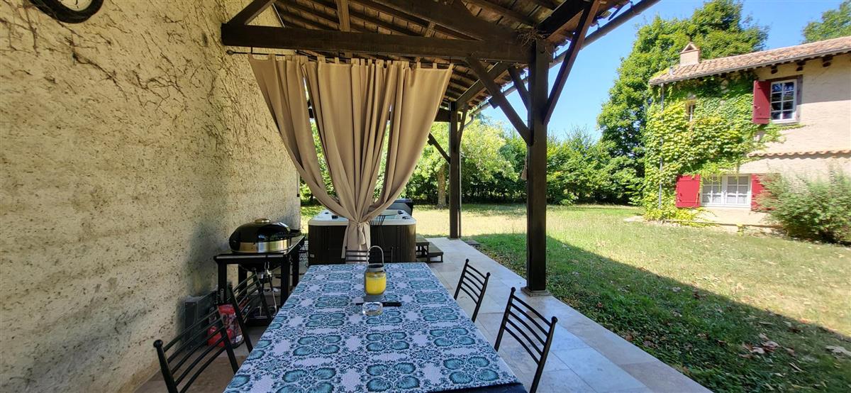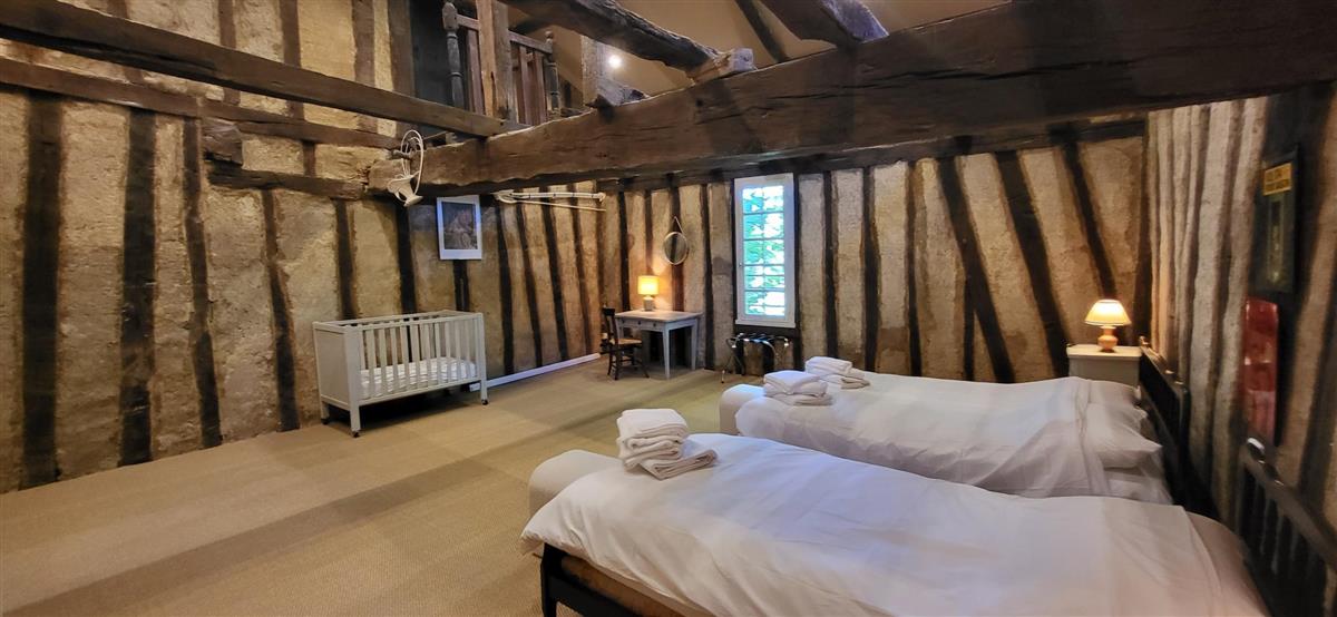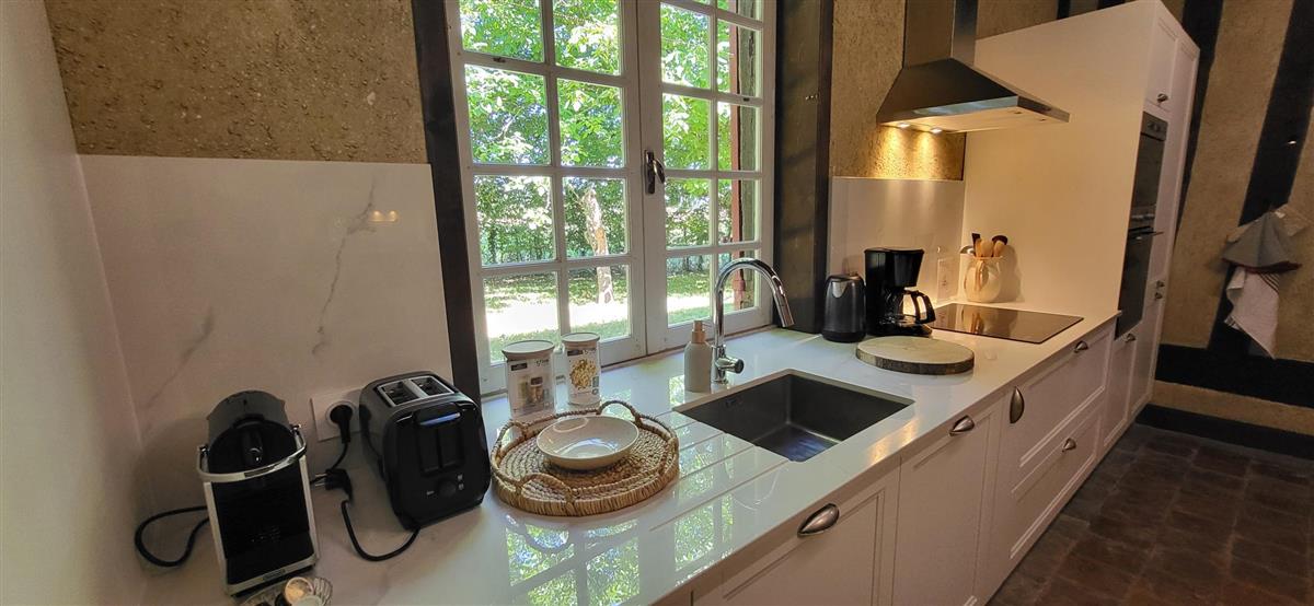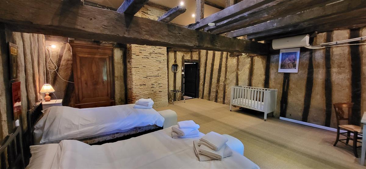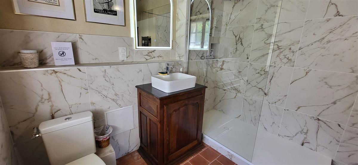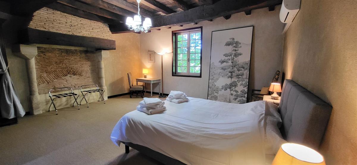 En rdc, une vaste cuisine équipée avec espace repas, salon alliant tradition et modernité, une salle d'eau avec WC. Depuis l'entrée, un escalier ancien équipé d'un monte-escalier automatisé, vous conduira à l'étage. La chambre 1 (1x160) et son coin salon, la chambre 2 à colombage (1x140 et 1x90) et la petite chambre 3 (1x140). Salle de bain et WC séparés. A l'extérieur, terrasse sous auvent et spa. Plus loin, devant la maison de maître, la piscine chauffée à partager avec le propriétaire qui saura être discret. Poêle à granule en rdc, clim réversible à l'étage.