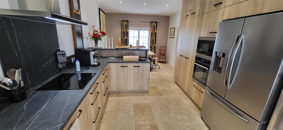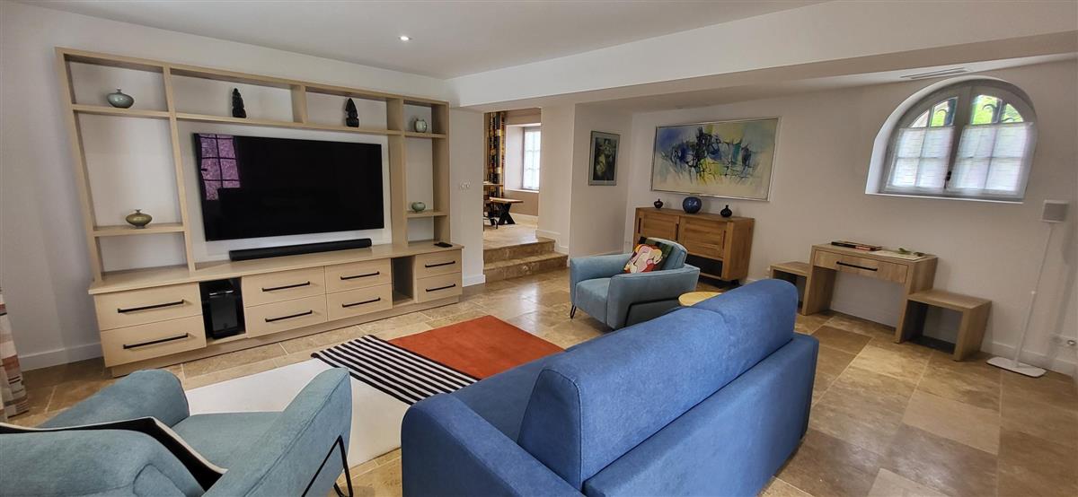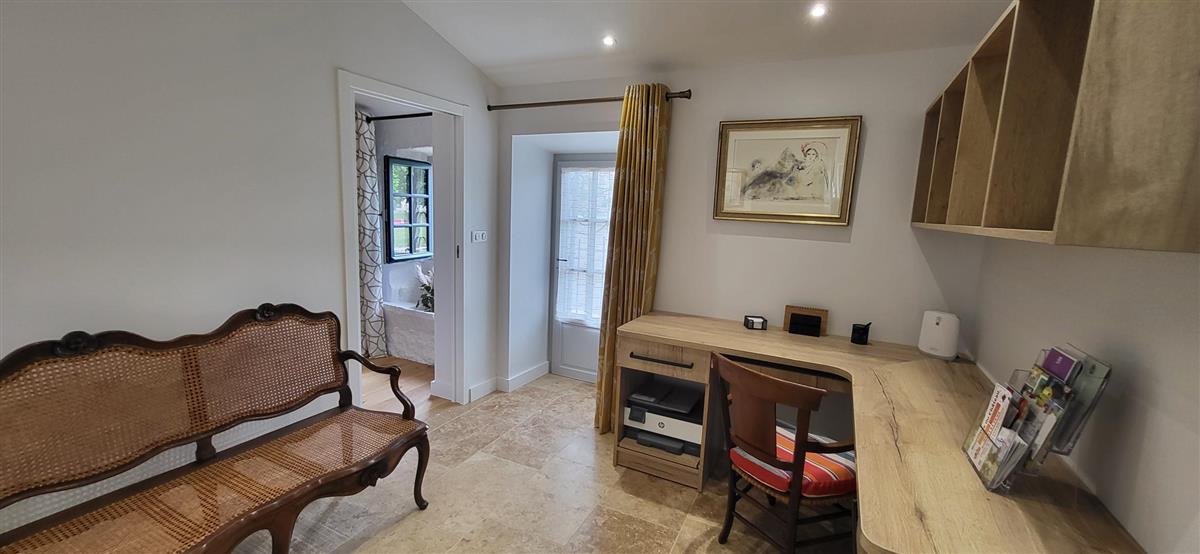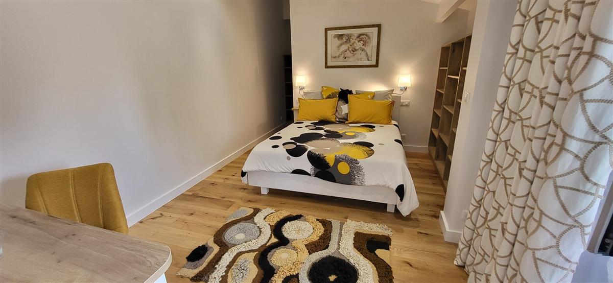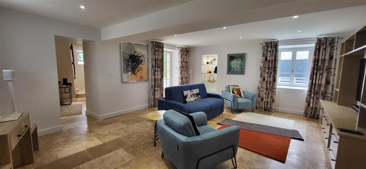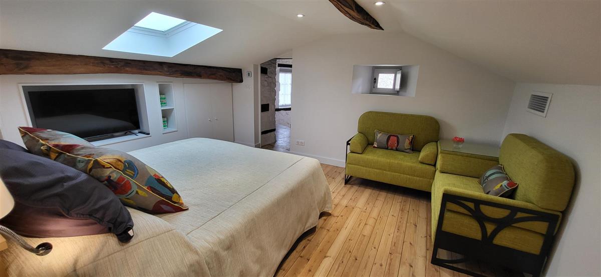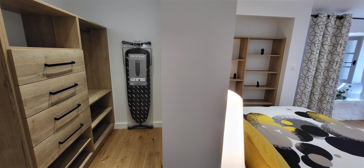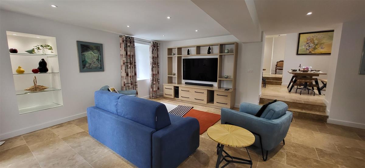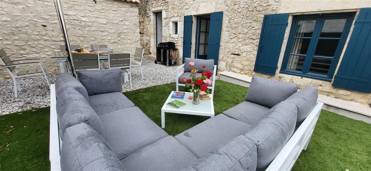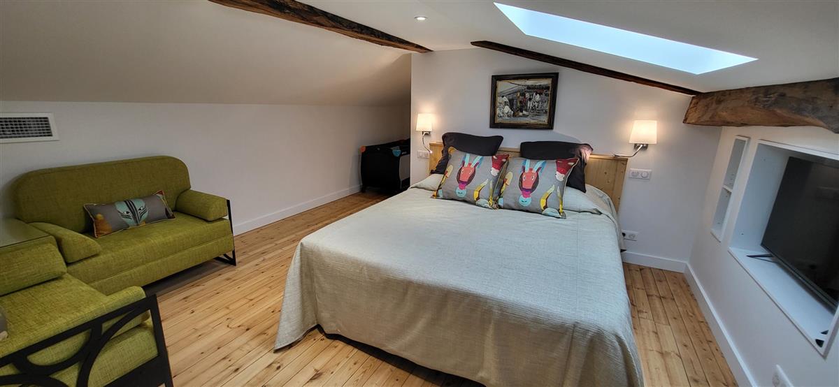 Sur un demi-niveau, la cuisine intégrée vous surprendra par son grand standing (cave à vin, réfrigérateur XXL, machine à café à grain), et son bar américain ouvert sur l'espace repas. Sur un autre demi-niveau, la première chambre (1x160) avec ses murs de pierre blanchis à la chaux, vous apportera un grand confort avec sa télévision et son dressing. Une salle d'eau avec WC lui est réservée sur ce même niveau, tout proche d'une pièce bureau et de l'espace buanderie (LL/SL). Côté vestibule d'entrée (dressing), un escalier en pierre et fer forgé vous mènera au cœur du pigeonnier, dans un univers vertical où la pierre blanchie rencontre le bois de la charpente ancienne : la seconde chambre (2x90 ou 1x180 - lits électriques) s'étire sur le reste de la longère, sous les toits. Avec sa télévision aussi, son petit coin salon et son dressing avec lit bébé parapluie, cette chambre est véritable petit cocon. La salle d'eau et son wc occupent la partie haute du pigeonnier, face à la chambre. Les draps (lits faits), le linge de toilette et le ménage de fin de séjour sont inclus pour vous procurer tranquillité. Wifi dans le gîte. A l'arrière de la maison, un jardinet avec salon de jardin, transats et barbecue plancha électrique, vous assure intimité, à l'abri des regards. La maison de maître, tout proche, demeure la résidence de vacances de son propriétaire. A deux pas, restaurant, terrains de tennis, et plus loin le lac de Castelgaillard, la forêt de St-Front et les vignobles du domaine d'Amblard.