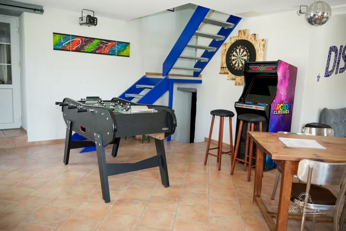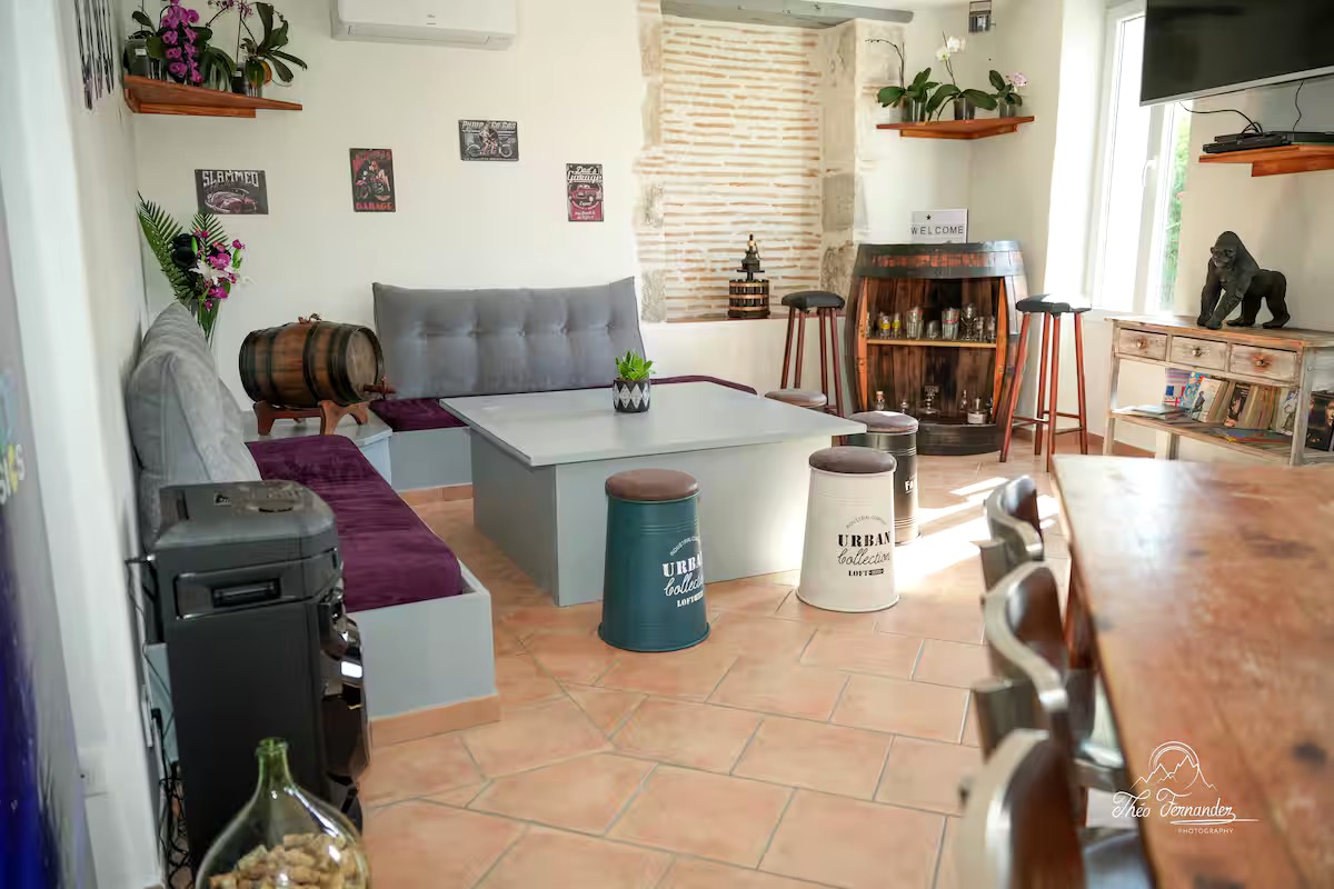 Situé sur la commune d'Ambrus, sur le territoire des Coteaux et Landes de Gascogne, le gîte, les 2 Tilleuls est aménagé dans une partie de notre maison de village. Il est situé à 25 mn d’Agen et 1h10 de Bordeaux et de Toulouse. Venez profiter d'un coin de tranquillité, du calme de la campagne et du confort d’un gîte tout équipé. Idéal pour accueillir une famille, un groupe d’amis... Piscine chauffée de 7mx3m (ouverte de mai à septembre, réservée aux voyageurs). A l'étage, une chambre avec lit en 140 et un dortoir avec 2 lits en 140. Une salle d'eau avec WC. Au rez-de-chaussée, pièce principale (50m2) avec coin salon, TV de 120cm (box orange + canal+), enceinte Bluetooth, cuisine équipée, coin repas, cheminée et espace jeux (borne arcade, babyfoot et jeu de fléchettes). Espace bien-être privatif avec SPA. Terrasse clôturée avec salon de jardin, barbecue.