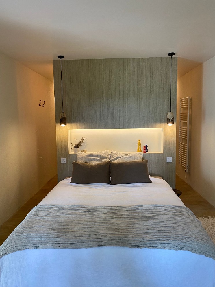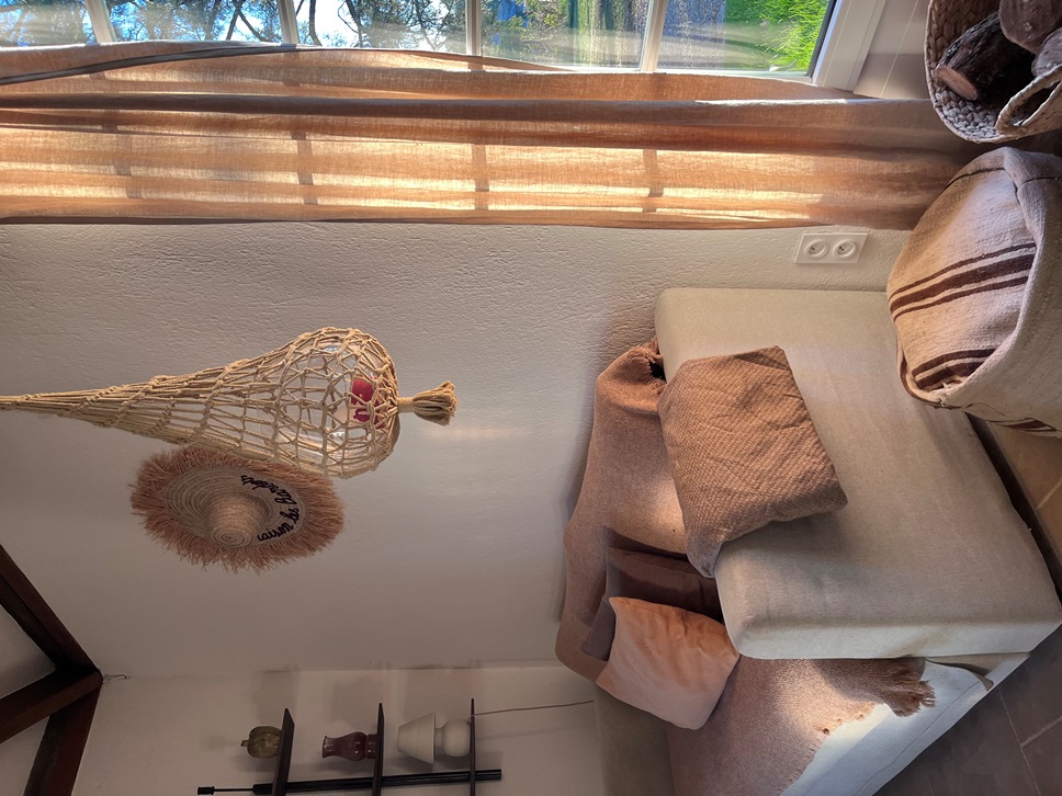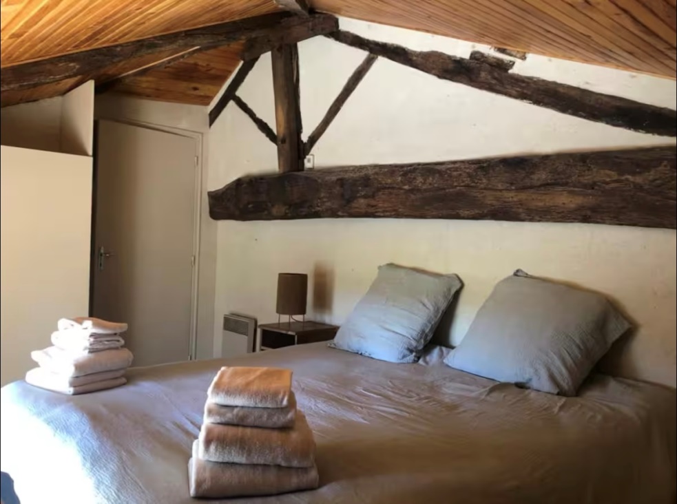 La maison peut accueillir 4 à 6 personnes. La maison est composée de 2 chambres, 1 suite avec un lit double, une à l'étage avec 2 lits simples et un canapé lit dans le salon.