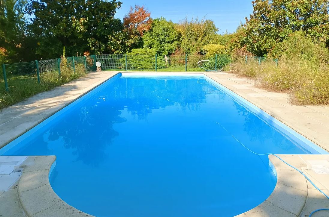 À l’extérieur, le jardin arboré invite au repos et à la détente. La grande piscine privée, entièrement sécurisée par une barrière, un cadenas et une alarme, constitue le cœur de la vie estivale. Une terrasse couverte permet de partager des repas en toute convivialité, tandis que les enfants peuvent profiter d’une balançoire et d’espaces pour jouer. La cour privative et l’abri à vélos complètent les équipements pratiques. Ménage en supplément, draps et serviette de bain en option.
