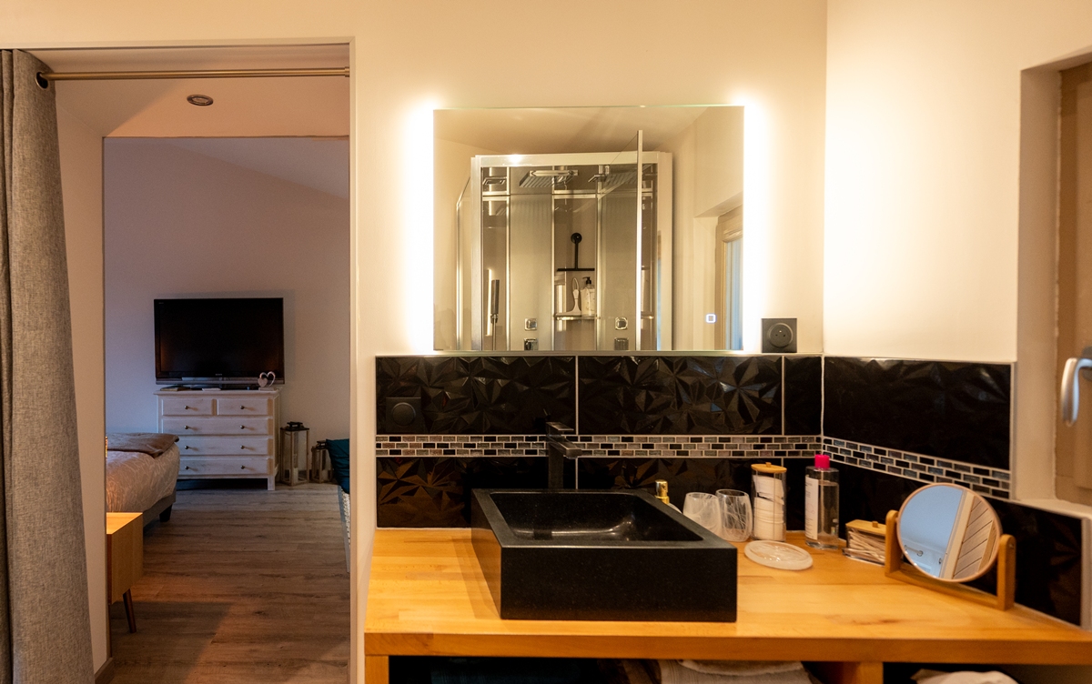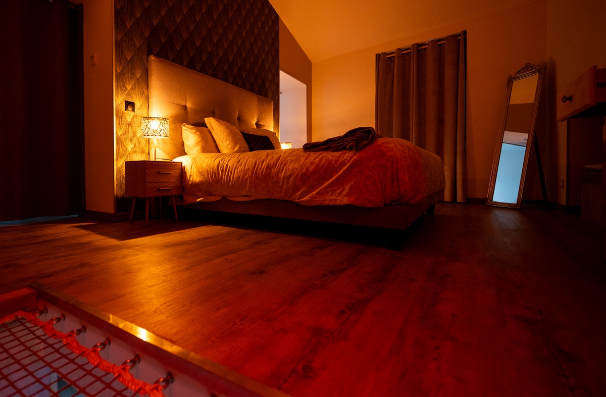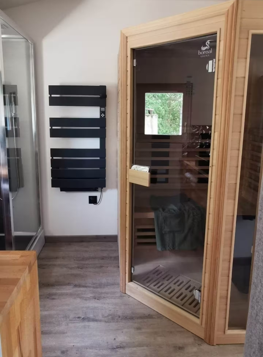Conçue spécialement pour les couples en quête d'une escapade romantique inoubliable... Préparez-vous à être séduits par notre spa et notre sauna privés, qui vous offriront un moment de détente et de plaisir sans pareil. Nous avons tout prévu pour que votre séjour soit parfait : une atmosphère intime et confortable pour déconnecter, un intérieur paisible pour vous ressourcer, et bien sûr, toutes les commodités dont vous avez besoin pour un confort optimal. Nous sommes impatients de vous accueillir pour un séjour que vous n'oublierez jamais.