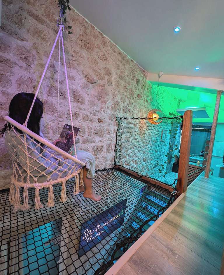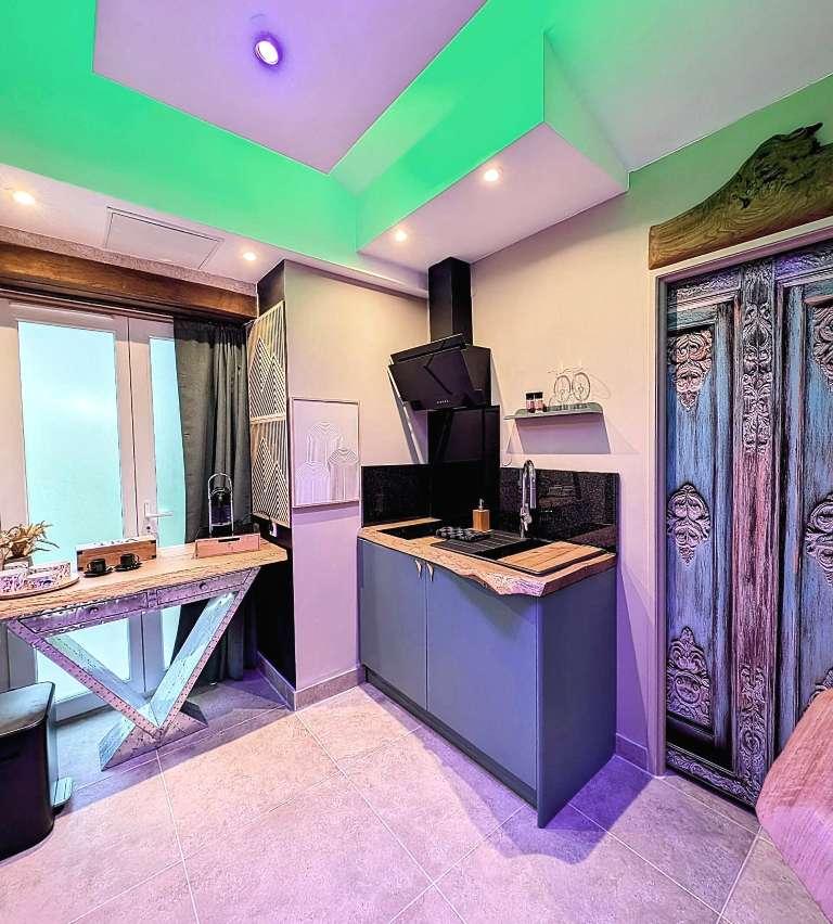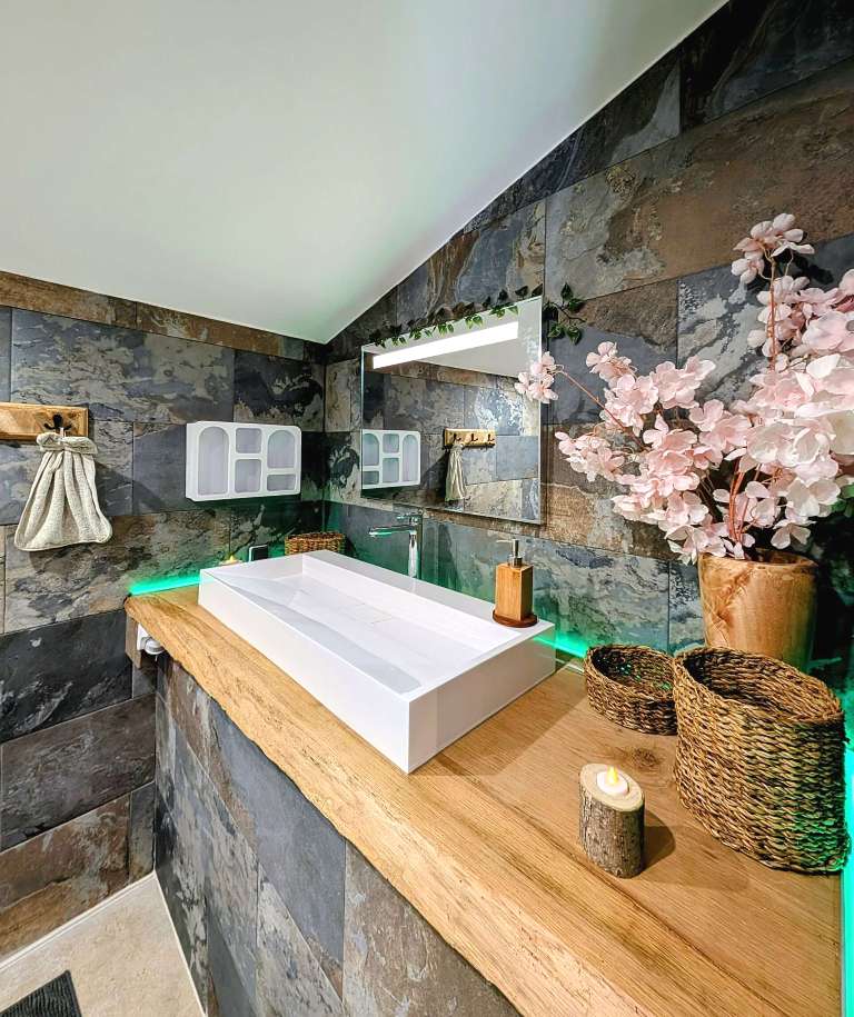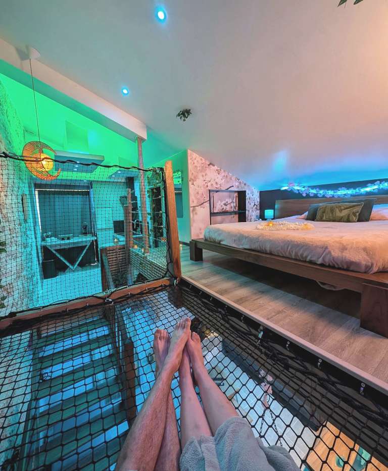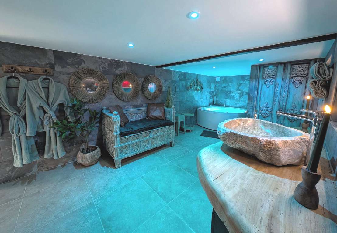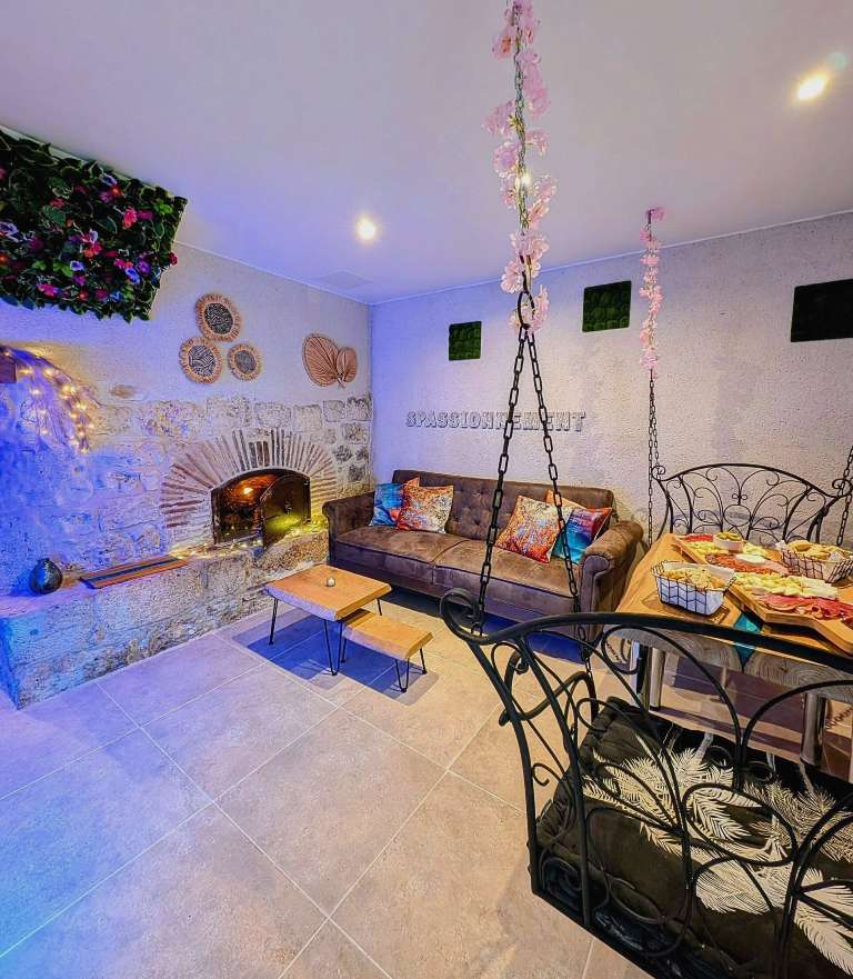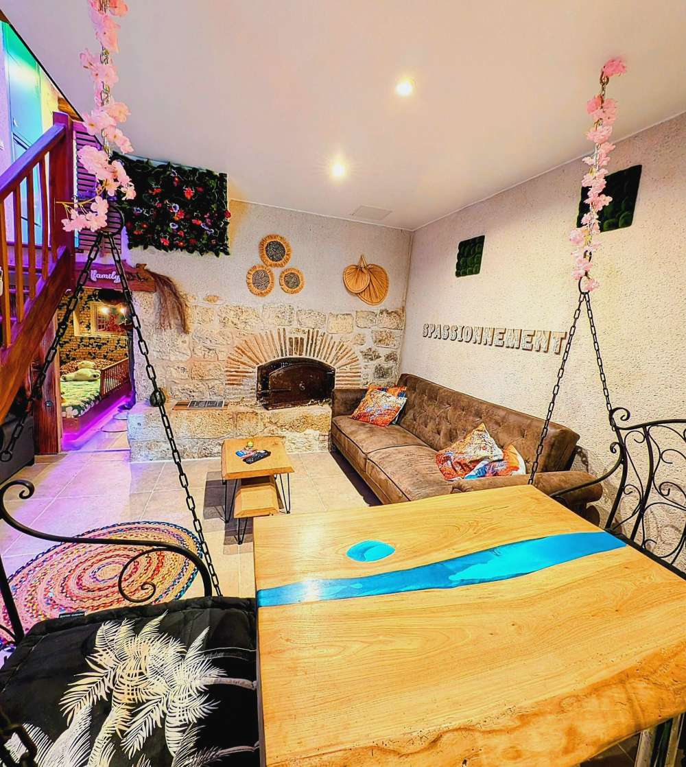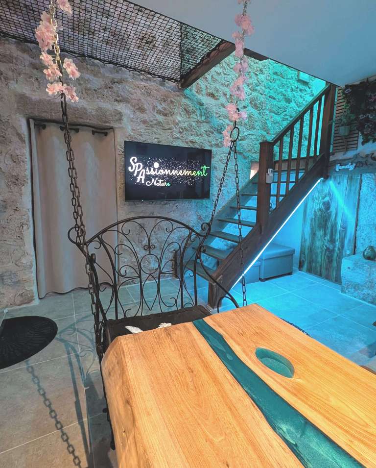 Votre cocon bien-être : Écran XXL aux teintes naturelles pour des soirées mémorables. Musique entraînante pour l’apéro ou film captivant sur Netflix et Amazon Prime, le tout en WIFI. Idéal pour un week-end en amoureux dans notre love room romantique, votre maison avec spa privatif !