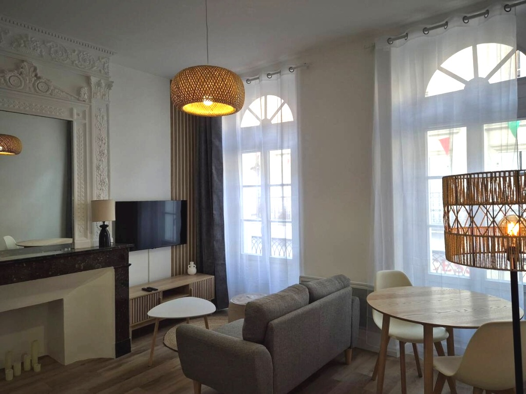 Offrez-vous un moment suspendu dans un cadre unique dans un appartement au cœur de la bastide Villeneuvoise. Offrez-vous une parenthèse de confort et d'authenticité dans ce charmant studio, idéalement situé en plein centre historique de Villeneuve-sur-Lot. Niché dans une bâtisse au caractère préservé, ce logement allie le cachet de l'ancien (cheminée...) à une décoration moderne du plus bel effet. Que vous veniez pour une escapade romantique, un séjour en famille ou un déplacement professionnel, vous trouverez tout le confort nécessaire : Wi-Fi, balcon, cuisine équipée... Situé dans un quartier animé et touristique, sur la rue piétonne principale de la bastide, vous serez à proximité directe des commerces, bars, restaurants, place du marché, théâtre, parking public ainsi que des transports en commun.
