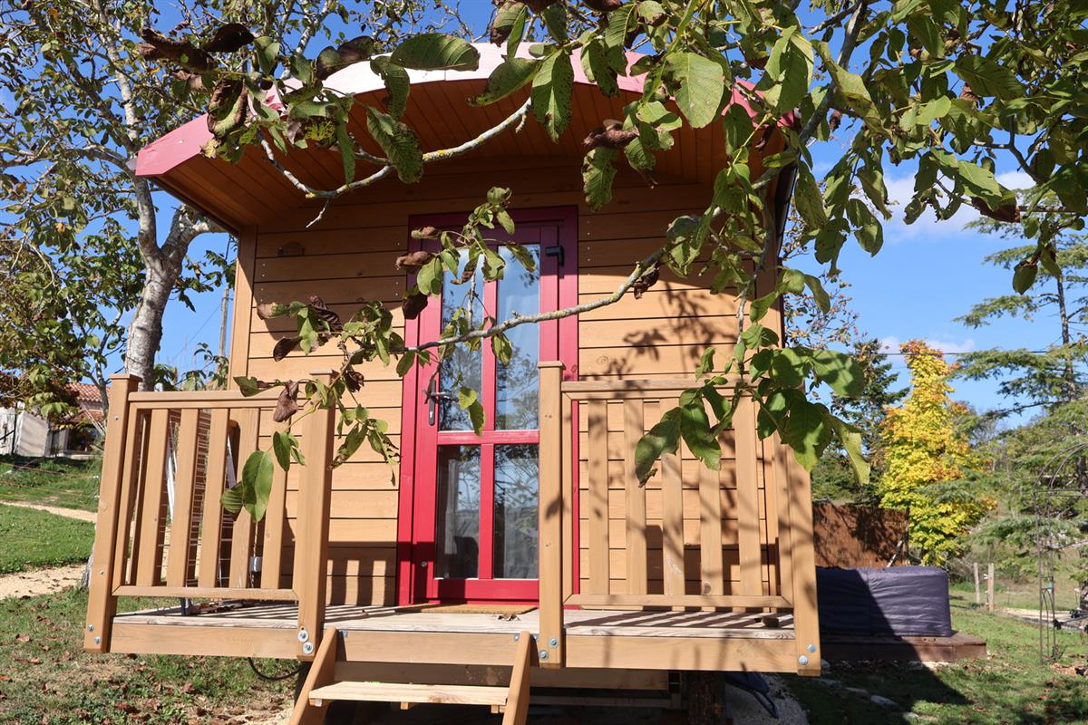 Découvrez Terra Bulle, un havre de détente à la campagne près de Villeneuve-sur-Lot, idéal pour une escapade bien-être en Lot-et-Garonne. Deux roulottes en bois flambant neuves vous accueillent pour 2 à 4 personnes, alliant confort moderne et charme naturel . À l’extérieur, vous profiterez d’un spa privatif, d’une table pour vos repas en plein air et d’un vaste jardin où vivent moutons, chèvres et poules, pour une ambiance bucolique et ressourçante.