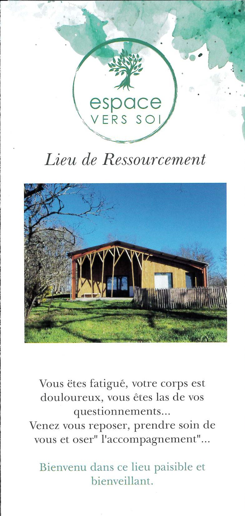L'Espace vers soi est un lieu de ressourcement paisible et bienveillant. Un lieu d'accompagnement en groupe ou en individuel qui propose des massages TAO et Thaï, des séances Bol d'Air Jacquier ( méthode naturelle d'oxygénation cellulaire), séance de Chi-machine ( qui stimule la circulation), repos en sauna...