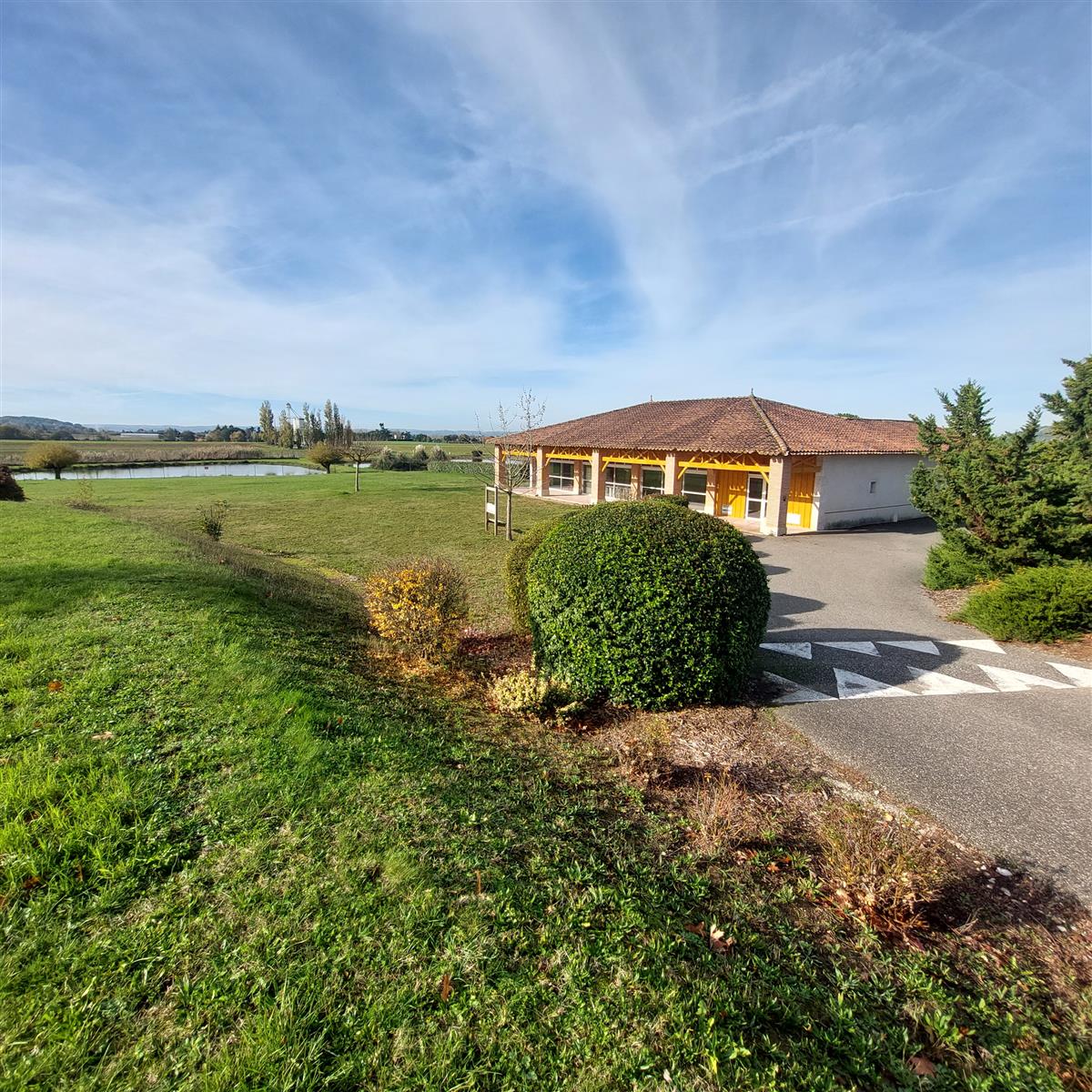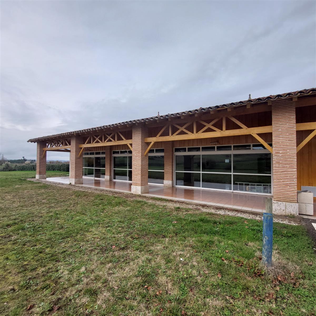 La salle des fêtes de 312m² se situe à la sortie du village de Lagarrigue, face à la vallée.