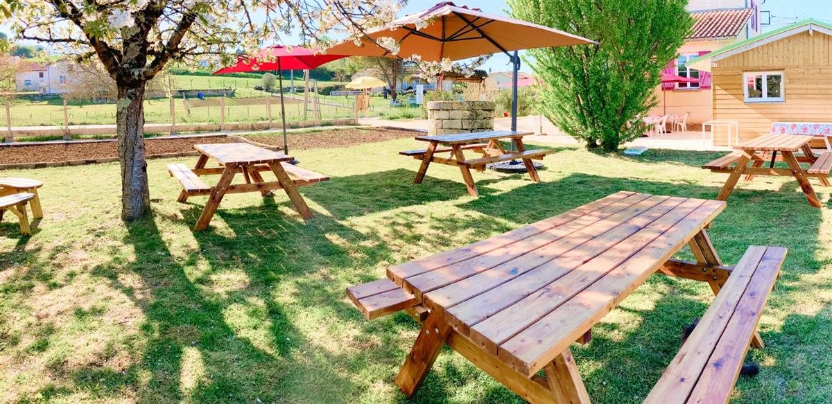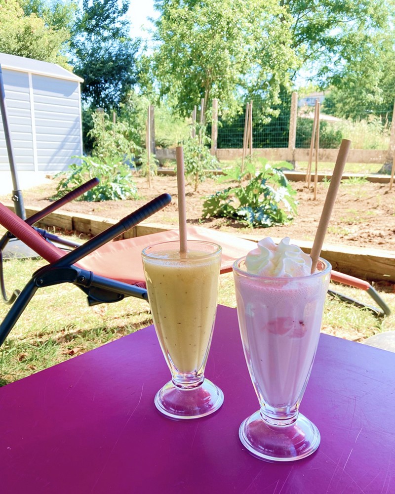 Au bord de la voie verte à Nérac, petite restauration en extérieur le midi uniquement, boissons et gourmandises sucrées l'après-midi.